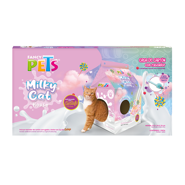 Las casas de cartón Milky Cat de Fancy Pets® son la manera más divertida de brindarle un lugar seguro por lo que se sentirá confiado en sí mismo y del ambiente que lo rodea. Además, tienen un rascador facilitándoles una superficie controlada y específica para ellos sobre la que poder afilar sus uñas. Ahora con sus nuevos modelos Mango y algodón de azúcar.