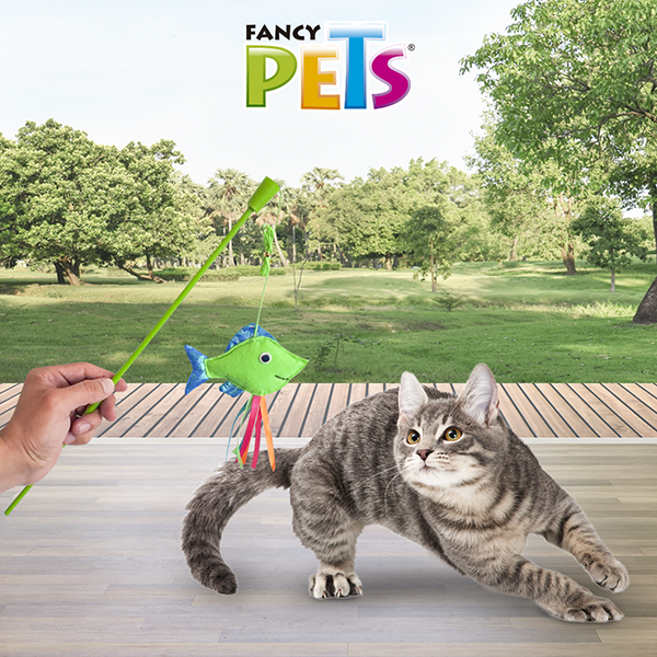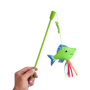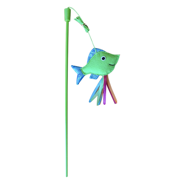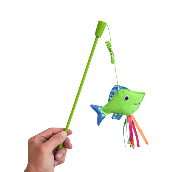 Juguete Catch caña de pescar diseñados para saciar el instinto cazador de tu gato, que como depredador se encuentra siempre al acecho Ayudará a disminuir el aburrimiento, a mejorar su comportamiento y a fortalecer el vínculo con su dueño. 100% poliéster.