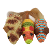El set surtido de juguetes de la línea catch de Fancy Pets® está diseñado para saciar el instinto cazador de tu gato, que como depredador se encuentra siempre al acecho. Ayudará a disminuir el aburrimiento, a mejorar su comportamiento y a fortalecer el vínculo con su dueño. Todos los juguetes son elaborados con materiales resistentes y con colores y formas llamativos. Diferentes materiales como plástico, cuerda, poliéster y plumas.