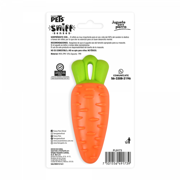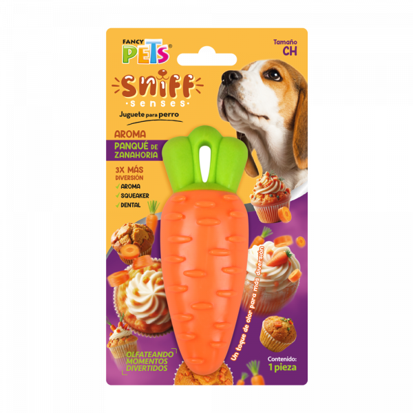 Estimula la mente y fortalece los dientes de tu perro con los Juguetes dentales de la línea Sniff. Fabricados en materiales seguros, duraderos y diseñados para resistir la masticación. Su superficie con protuberancias y textura ayuda a limpiar los dientes y masajear las encías mientras tu mascota juega. Disponibles en forma de zanahoria con aroma a panqué y elote con aroma a palomitas de maíz, cada juguete tiene un aroma irresistible que estimula el olfato de tu perro y lo mantiene entretenido por mas tiempo. Además, incluyen un squeaker para agregar diversión a la hora del juego. Los juguetes están disponibles en dos tamaños para adaptarse a perros de todas las razas y tamaños.
