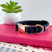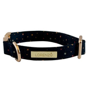 El Collar Midnight Sky de Lorenzo The Dog es la elección perfecta para los perros con un estilo elegante y atemporal. Su diseño en tono azul marino con diminutos detalles en tonos dorados y burdeos evoca la serenidad de un cielo estrellado.